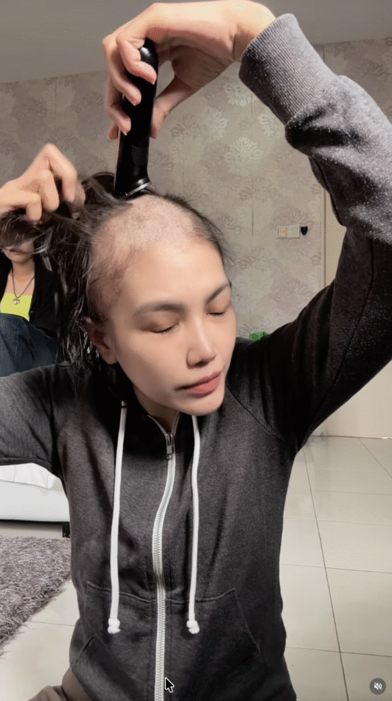 Namun, dia memilih untuk berdepan dengan realiti tersebut dengan hati yang tabah, walaupun terpaksa melihat rambut gugur satu demi satu.