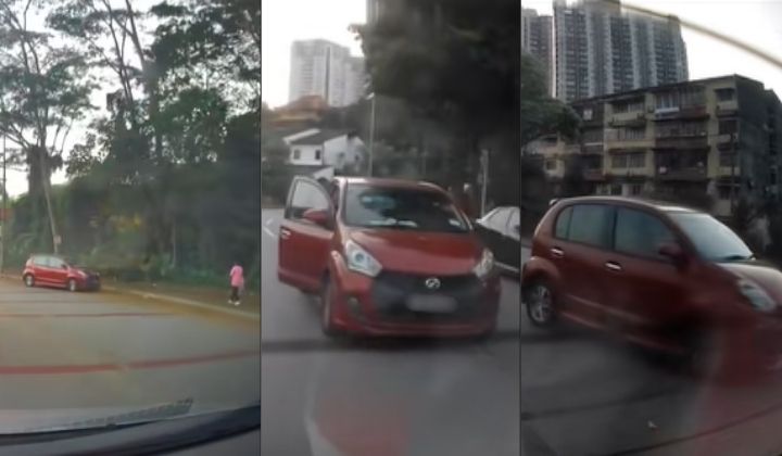 Menerusi rakaman berkenaan, pemandu Myvi merah itu dilihat menghimpit ke bahu jalan dan menghampiri seorang individu yang sedang berjalan di laluan pejalan kaki.
