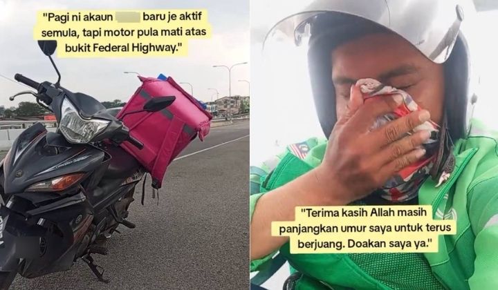 Satu video tular di media sosial memaparkan detik menyayat hati seorang penghantar makanan yang diuji hebat apabila motosikalnya tiba-tiba rosak ketika berada di atas flyover sebuah lebuh raya.